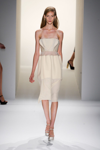 The Calvin Klein Collection was the very last show at the very end of the Mercedes Benz New York Spring 2013 Fashion Week. They kept the collection simple with blacks, whites and greys. The collection was about peplum, bustiers and waists cinched with skinny belts